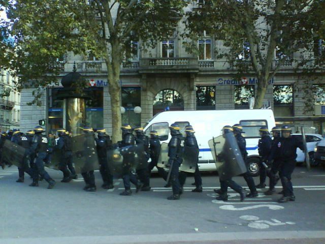 Déconnecté | et puis pour reconnaître un flic c'est trèèèèèèès simple !!! alors soit tu as des civils mais ils ont la bande rouge sur un bras, soit ils ont un casque et un bouclier ( on dirait Robocop d'ailleurs ) ! |