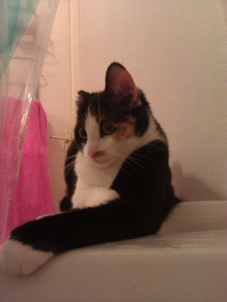 | Dire merci | Fluo trop fort! J'adore sa pate tigrou! J'aime pas forcément les tricolores (sauf Chaton) et ton chat! Elle a vraiment une répartition super belle de ses couleurs! |