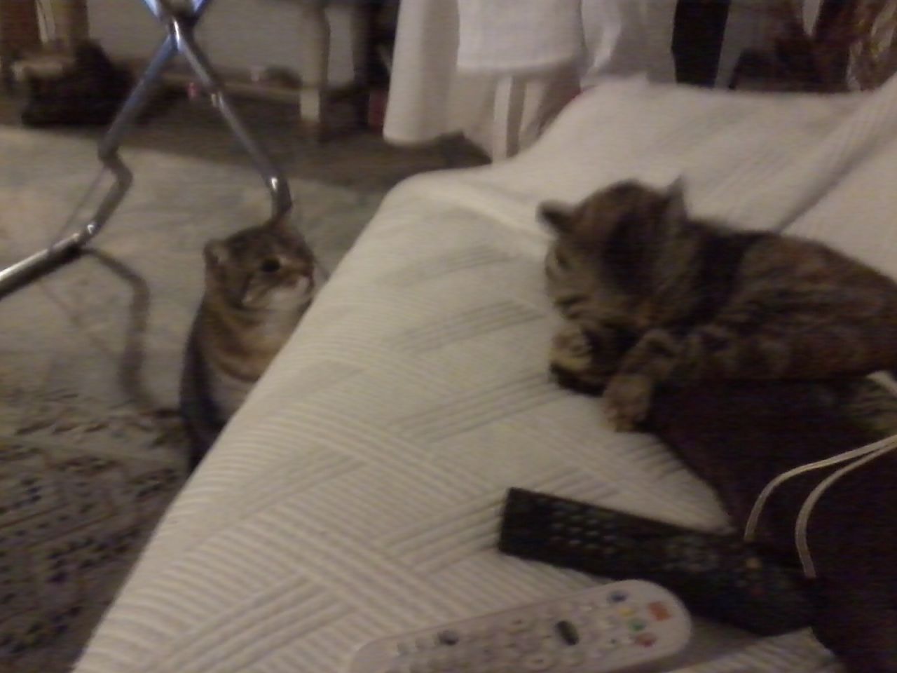 | Dire merci | chez moi, on a adopté un nouveau chat, une petite minette qui auraient quelques mois. je craignais la rencontre entre elle et Fripouille, matou qu'on a depuis 9 ou 10ans. Ben étonnement, ça fait 5 jours qu'elle est là, et elle m'épate! Elle mange dans sa gamelle (et elle pique dans celle du gros), elle dort sur le canapé, elle va dans la litière (aucun pipi-caca en dehors!!) Et le comble, c'est que les 2 cohabitent sans souci! ils se sont un peu grogné dessus, mais c'est tout! ils s'observent, se "fshiiiit", mais pas de baston: ![]() |