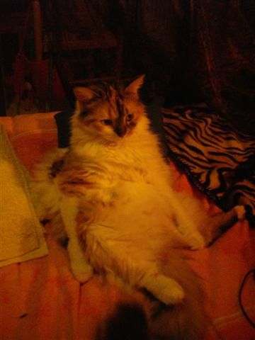 | Dire merci | Voila Croquette ma folledingue ! Elle a 3 ans. Elle est tres caracterielle, c'est un chat qu'on admire mais qu'on ne touche pas. Elle est caline uniquement quand elle veut, sinon elle est tres aggressive. Moi j'ai un pacte de non aggressivité avec elle lol. je ne l'embete pas et elle ne me griffe pas mais mon mari aime bien la titiller alors il recoit la monnaie de sa piece ![]() Dans notre ancien appart elle faisait beaucoup de crises d'epilepsie (elle avait un traitement mais ca la defoncait vraiment ) mais depuis 1 an (on a emmenagé dans NOTRE chez nous) elle n'a fait qu'une seule crise ! et plus de pipi sur les lits / canapés non plus.![]() ![]() ![]() |