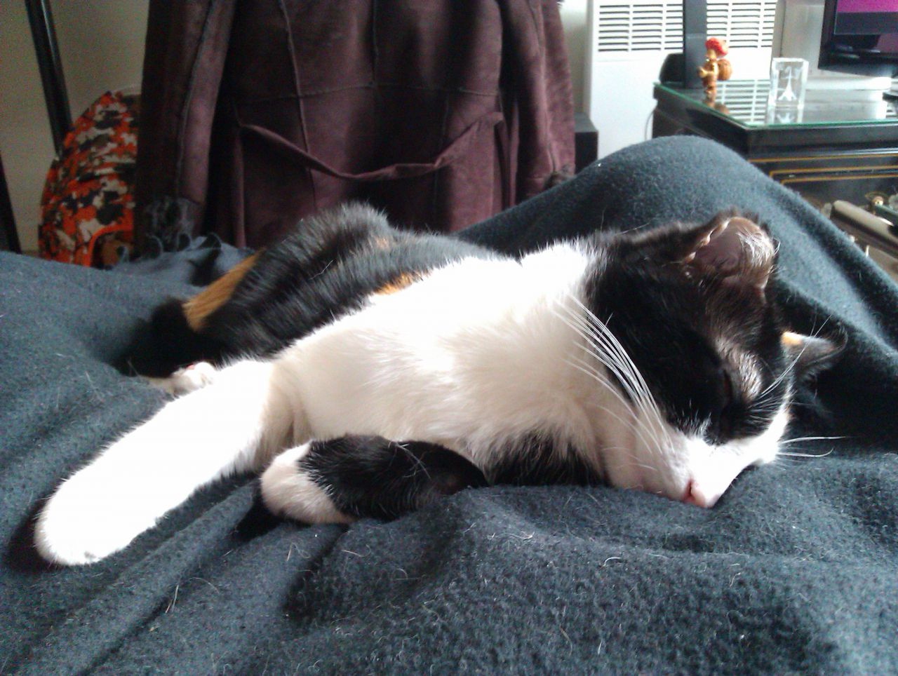 ... Donc, bon... J'aurai pu y aller en voiture, mais il n'y a jamais de place pour se garer, et j'habite à 5minutes à pied ! C'est juste quand les griffes de Fiesta se sont plantées dans mon bras où j'ai réalisé qu'en fait aller dehors ce n'était pas du tout inné pour un chat d'appart