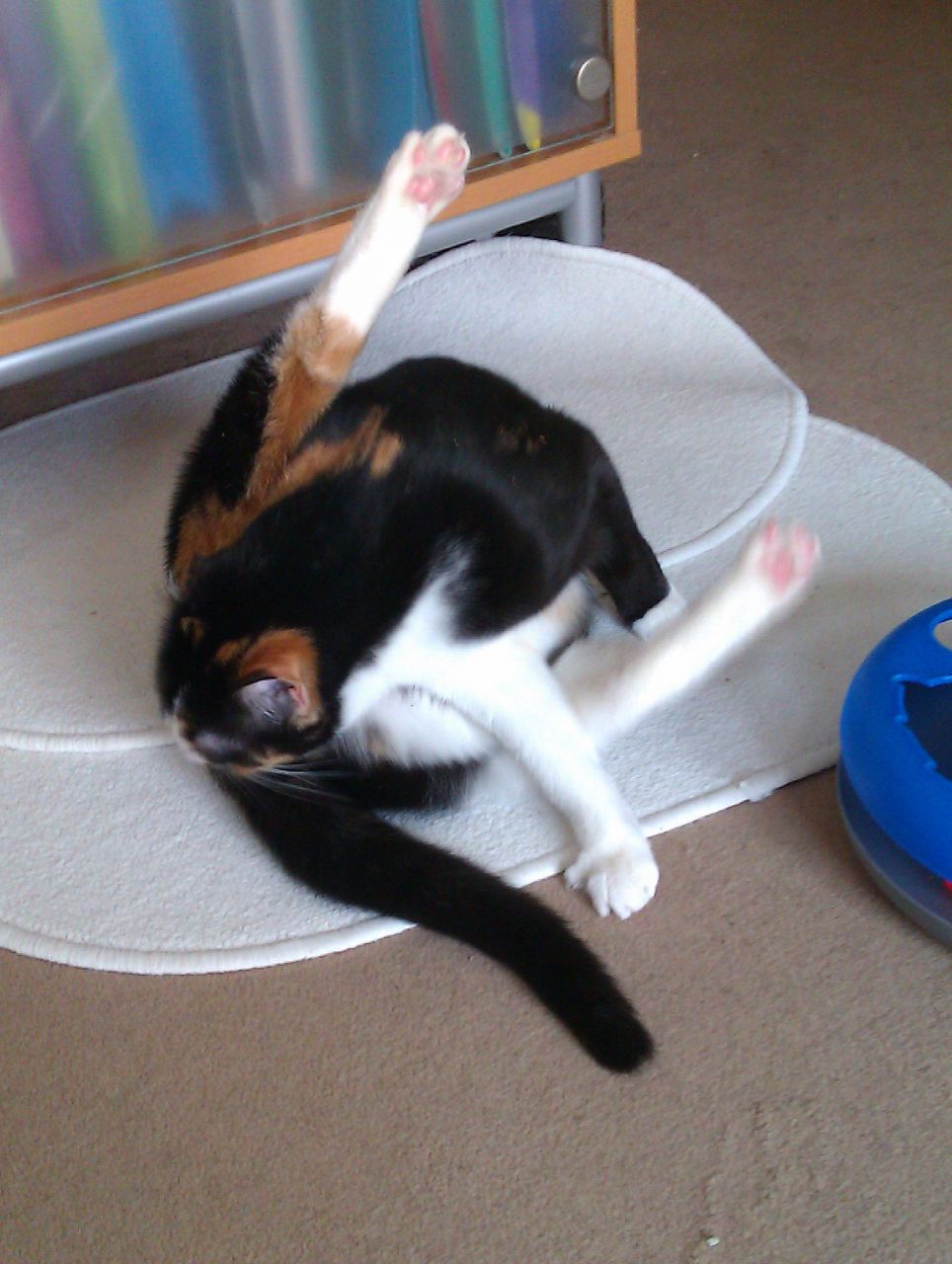 | Dire merci | Caline est très jolie ! Pour le bidon, je trouve ça hyper disgracieux, mais je ne sais pas comment faire pour qu'elle retrouve sa ligne de jolie jeune minette! Fiesta n'a pas du tout la même silouhette, pourtant elles sont nourries pareil ! |