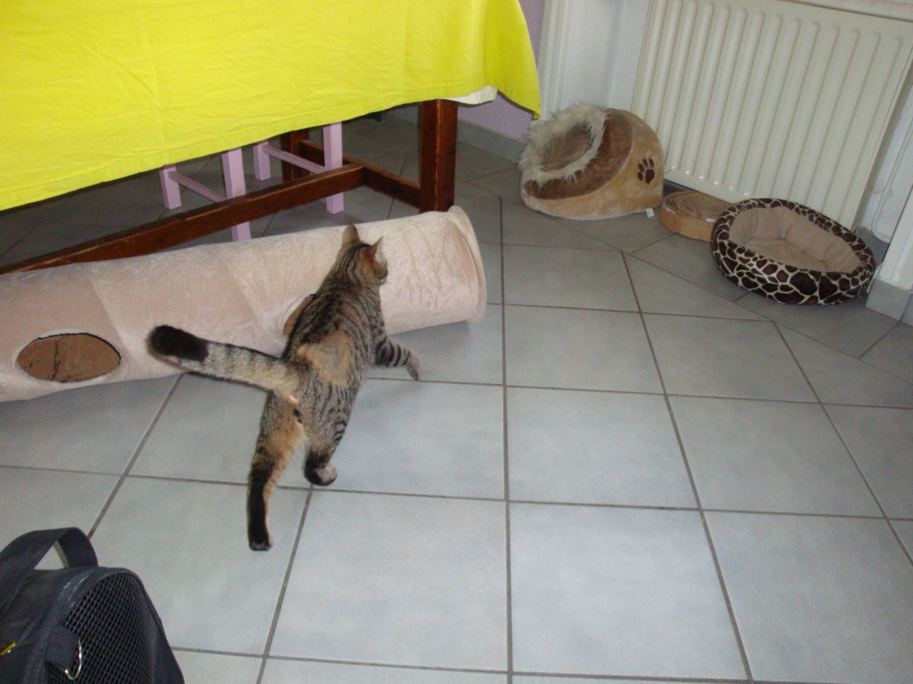 | Dire merci | Et hop, une photo de Greg, découvrant son nouvel environnement : ![]() Et mon gros qui surveille, l'air pas content : ![]() |