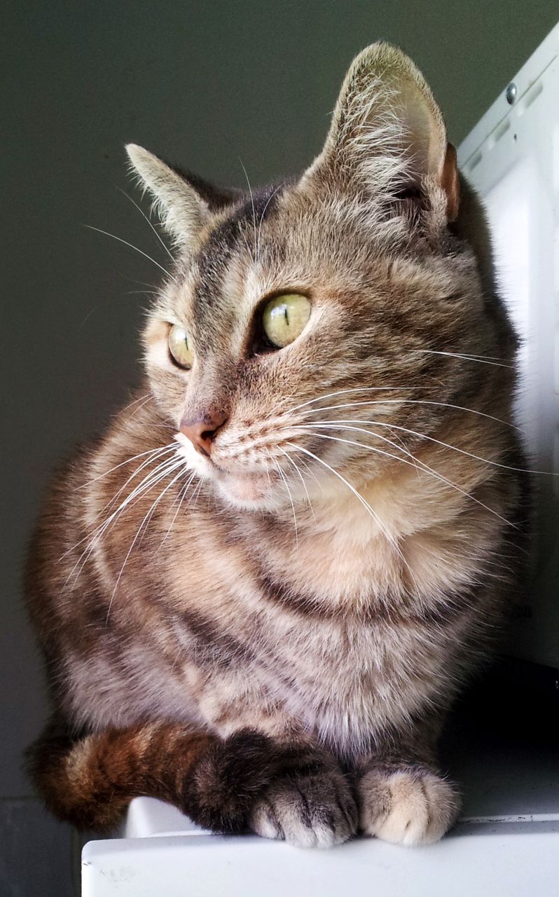 | Dire merci | Iram : ton chat est trop mignon, il est rigolo avec ses poils clairs parsemés Hygie : trop dure la vie de chat chez toi De mon côté Chatoune va toujours bien, elle a grossi depuis son arrivée c'est indéniable mais je trouve qu'elle se stabilise (et je le vois aussi dans le bol de croquettes, il en reste plus que d'habitude, du coup je lui en mets un peu moins etc). Elle s'est vraiment habituée à son nouvel environnement, elle joue avec ses nouveaux jouets,et elle fait aussi le chien de garde : elle grogne quand on sonne chez moi Ma belle ![]() (oups la photo est grande je sais pas comment la réduire... ) |