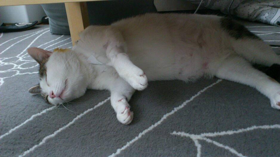 | Dire merci | Voilà Chatoune de retour à la maison... Hier, elle qui avait été si sage chez le véto, aujourd'hui c'était une toute autre histoire apparemment... Elle a eu tellement peur qu'elle a attaqué, elle griffait, crachait (elle s'est même fait pipi dessus) ; impossible de la sortir de la cage, ils ont du l'endormir a travers les barreaux...![]() Donc je suis allée la récupérer ce soir, elle était complètement amorphe allongée sur le côté dans sa cage de transport, après 15 minutes de route sans bouger, elle est restée comme ça 15 minutes à l'appartement... Elle bouge un peu, elle rampe de biais, recule, se roule sur le côté, elle "tombe"... Tout ça par intermitance, avec beaucoup de pauses "dodo"... Elle est en hypothermie (les patounes froides) donc je suis ses mouvements avec un plaid pour qu'elle se réchauffe... La cicatrice me parait énorme ![]() En gros la nuit sera longue autant pour elle que pour moi... La véto m'a dit qu'il était possible qu'elle fasse un genre de crise de douleur cette nuit ![]() Je croise les doigts pour que la nuit se passe sans encombres et qu'elle prenne ses médicaments demain sans soucis... En tout cas c'est très dur de la voir comme ça, complètement amorphe, toute affaiblie pour cette nuit! |
