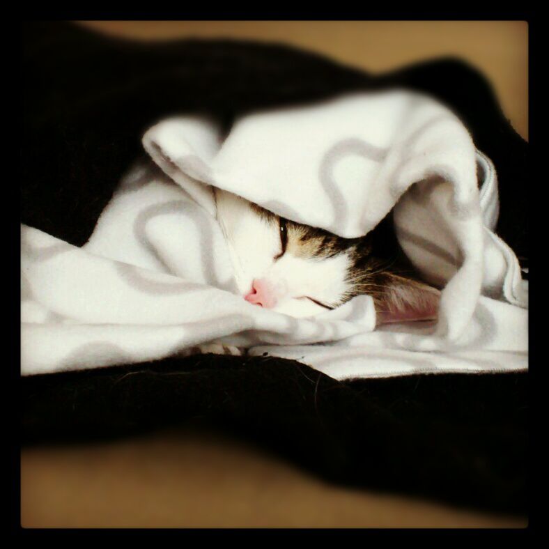 | Dire merci | J'espère vraiment que ça sera la dernière fois de l'année que je l'emmenerais chez le véto tu m'étonnes! (la mienne est vraiment un cas, hein! et il y a des fois où elle s'est bien comportée quand même, mais elle était dans une période difficile...on verra comment se passera sa visite de cette année et si le véto arrive en armure! )Oh, un chat en hibernation, plus haut! |