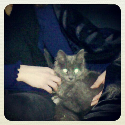 | Dire merci | Rolala... Gros craquage hier soir en rentrant chez moi, j'entends un miaulement dans les buissons... Je vais voir et que je vois sortir une boule de poils grise de 3/4mois... J'étais avec un couple qui s'était arrêté aussi, le petit chat nous a tourné autour pendant qu'on discutait et qu'on cherchait une solution, et zioup il a foncé dans mes jambes pour des calins et tout le toutim... Sous ses longs poils, il était maigre comme un clou... J'ai fini par réussir à convaincre ma soeur de le prendre pour quelques nuits, faire prendre en charge les frais véto par l'école du chat (une amie à elle en fait partie) et tenter de lui trouver une famille "rapidement"... Donc je lui amène, elle sert de l'eau, un peu de thon, le chat se jette littéralement sur l'eau et n'en décroche pas, il devait être sacrément déshydraté... On lui a mis une litière et il y est allé tout de suite, et il s'avère que c'est une fille!^^ Elle était très collante et demandeuse de calins hier soir; normalement elle a passé la nuit seule dans le salon+cuisine. Akhal9 c'est ce que tu cherchais une petite minette a poils longs (grise comme les chartreux). (Ma soeur veut déjà me la refourguer quand la minette sera en ordre niveau véto... )A la voir, elle a déjà connu la vie en intérieur, elle est propre etc On s'est dit qu'elle avait été laché là et que depuis elle avait pas du boire ni manger, elle était terrorisée par les voitures etc Bref, normalement samedi matin véto pour la miss (Faut que j'arrête avec mon côté BB ) |