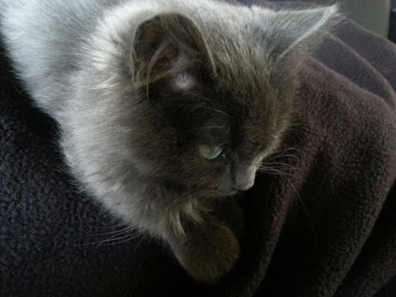 | Dire merci | Ouais il nous fait de la régression là le gros matou! Sevré trop tôt, sans doute, mais c'est dur à dire vu qu'il a été trouvé bébé dans la rue. |