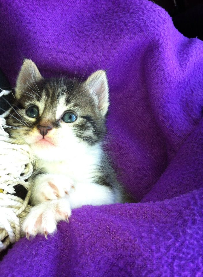 ) un petit chat d'environs 3 semaines, il ce porte bien, boit bien et est bien vivace !! Donc voila, nous sommes nous aussi nounou maintenant