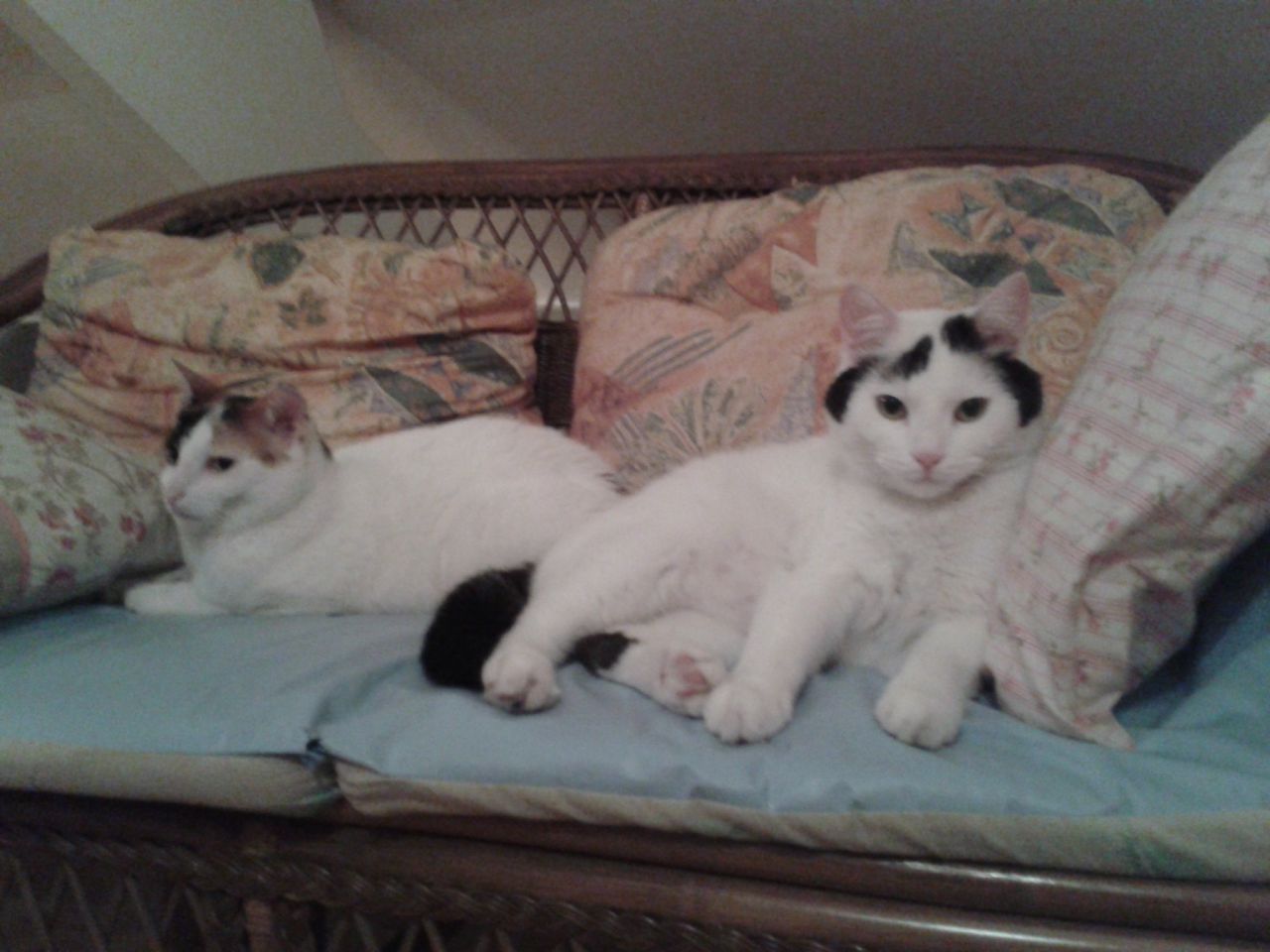 | Dire merci | J'ai deux adorables chats aussi. Fred et Sherkan. ![]() Fred le tigré et Sherkan le gris. Dites moi les votre font comme les miens? - Sherkan passe son temps à me lécher le visage ou les bras dès qu'il peut -Fred "pleure/miaule" si je me mets à tousser Me demande ce que ca signifie. |