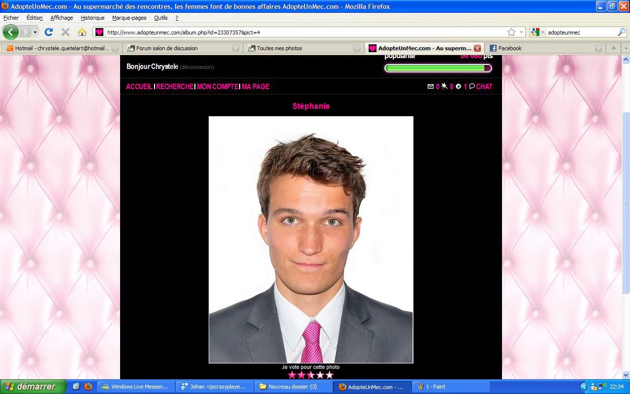 | Dire merci | Arf malheureusement channelle, ca risque de n'etre ni le premier ni le dernier. Moi mon chéri que j'aime depuis 1jours, s'est déconnecté d'un coup sans me prévenir et en plus c'est pas lui sur la photo! Mais bon je l'aime!!! |