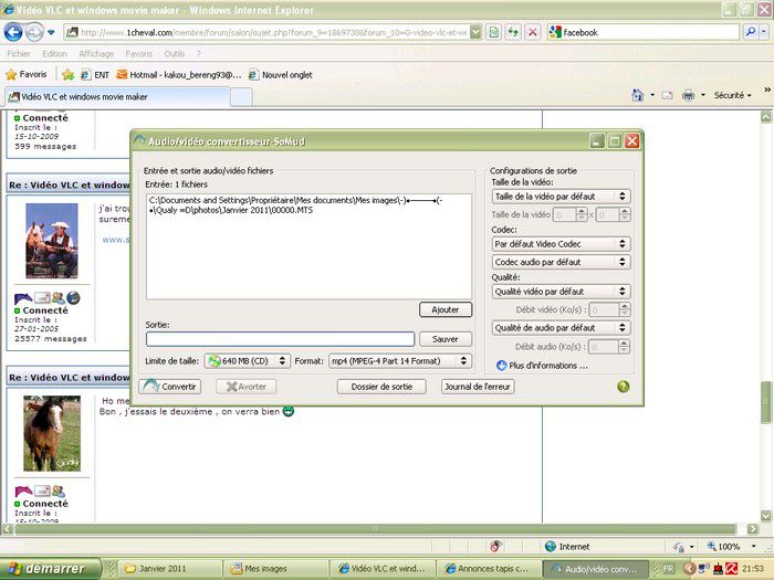 | Dire merci | Donc maintenant j'ai telecharger le convertisseur mais je ne sait pas m'en servire ![]() Je suis une quiche J'ai ca : [url=https://www.1cheval.com/membre/services/photos/images/75921.jpg] ![]() [/url] J'ai donc mis le fichier que je voulais convertir , mais je fait quoi après ? |