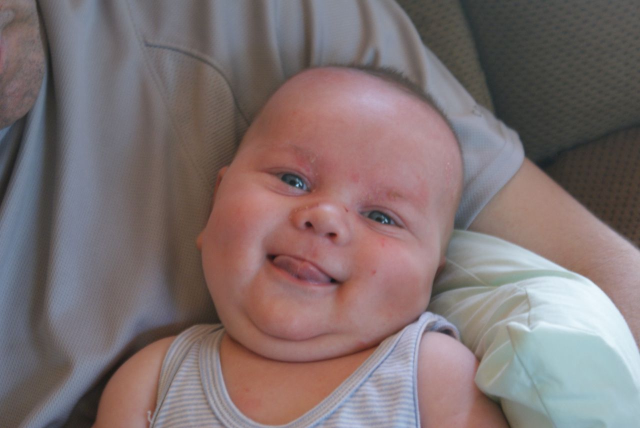 | Dire merci | mon Bouchon est un ogre reflexion de la crêche "il est tout fluet mais mange pour quatre" pour le "5h du mat" on va passer demain à un 240cc, 2 tartines sans croûte + confiture à 8h00, total zap de la soupe (me demandez pas pourquoi mais en 2 mois 1/2 il n'en a mangé que 3 fois car... monsieur sieste à 10h30 ), repas complet (250gr), goûter avec des fruits frais + betterfood (250gr) et bibi du soir (150-180cc) + un chouia de l'assiette de papa-maman.Suis contente : il mangheuuu, il mangheuuu Question dodo, rien n'a changé. On arrive à retarder parfois un peu le dodo en tirant jusque 19h00 mais c'est plus souvent 18h15-18h30. Lever en semaine à 5h00 (et il est pas du tout, mais alors pas du tout du matin mon Bouchon ). Le we c'est debout 9h00. Mais souvent, le samedi, il se réveille à 5h30, l'habitude... et réclame son bibi. Mais alors, c'est re-dodo jusque 10h00 et on décale les repas un peu.Il aura DEJA 1 an le 30 août prochain... qu'est ce que ça passe vite. Même s'il restera "fils unique". Pas de Bouchon 2 pour l'avenir. ps : Timothée et rho rho rho chou même avec sa blessure de guerre |