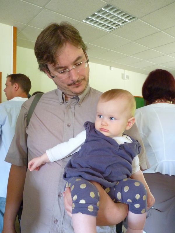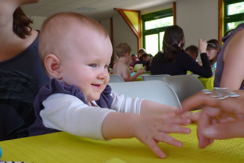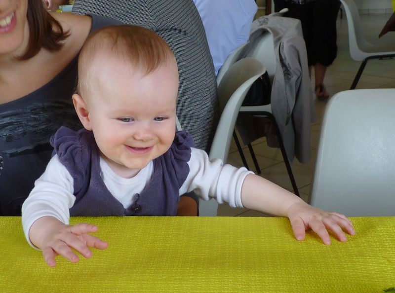 | Dire merci | Line : je n'avais pas mis mais ta fille est tout simplement ra-vi-ssan-te Dark : un filou en herbe ? il a une bouille à bizouiller tout plein ! Pitites nouvelles : hier dimanche rien qu'à nous. un Bouchon exemplaire. Trotteur un peu le matin, collation car bibi tôt, dodo, repas, jeux au sol, sieste quand il a comencé à escalader mes genoux pour se blottir en se cachant les yeux, cuisine et... encore un peu de trotteur. Oui, bon, c'est amusant de galoper partout mais c'est moins amusant quand on est tout seul dans la pièce donc... hop ! dans la cuisine avec maman. Et comment attirer l'attention de maman ? en lui fonçant dessus naturellement. J'ai plus de talons mais j'ai un P'tit Bouchon qui s'en est donné à coeur joie et a bien rit. sinon, il a un rhume depuis 2 semaines qui ne passe pas : tous les mômes à la crêche sont malades Ce matin, son papa l'a déposé. Y a eu des larmes, des yeux de bébés battus et bandonné puis ça a été, il a regardé les autres et son papa a pû partir en douceur. Ben oui, un we complet avec papa-maman... Il embrasse son papa et lui fait des bisous bouche grande ouverte. A moi ? prrrrt, rien de rien. |