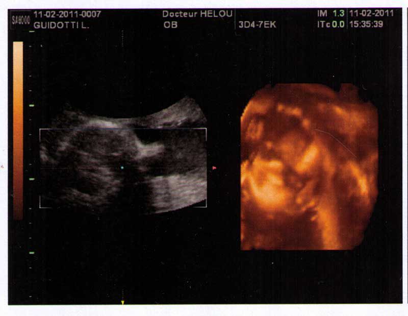 | Dire merci | Bonjour les filles, ca fait un moment que je n'étais pas venue ! Bravo tagada, ton petit est vraiment choux ![]() Conny : j'ai eu ce problème de pertes vaginal, mon gygy dit que c'est normal que ça arrive, on secrète plus de je sais pas quoi. mais faire attention aux infections ![]() Sinon j'ai eu une écho aujourd'hui : Bébé pèse 905 grammes et mesure 30 cm ! tout va bien. Photo 3D de sa bouille écrasée sur le placenta ! il a cru que c'était un oreiller. Il a la tête en bas mais peut se retourné encore, et revenir a sa place tête en haut... bon, qu'il reste comme ça pas de soucis. ![]() Voilààà ![]() Ila la tête vers le bas. |