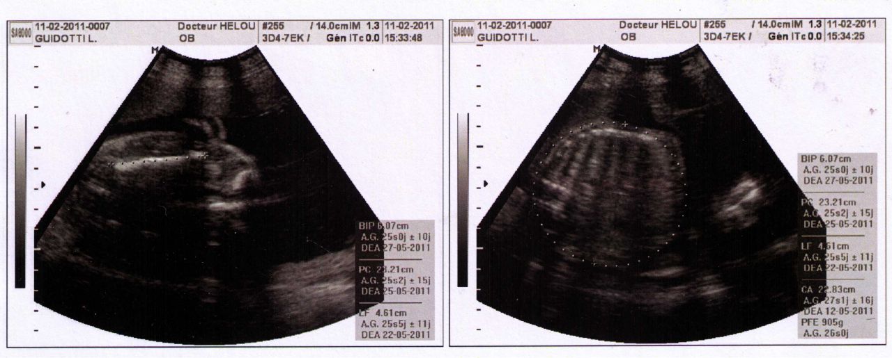 | Dire merci | BIP: diametre d ela tete PC: perimetre cranien Perimetre abdominale: CA (je pense) taille femur:LF |