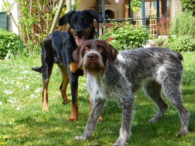 | Dire merci | j'aime bien la deuxième où la beauceron tire la langue ! Badine est très jolie, jolie tête d'arabe ! |