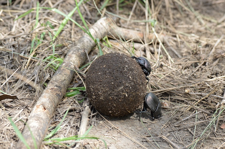| Dire merci | 2 bousiers, Tessa ![]() La femelle au dessus qui dirige le mal qui ne voit rien puisqu'il pousse avec ses pattes arrières, la tête en bas! Avec de la crotte d'éléphant, y a de quoi faire ![]() |