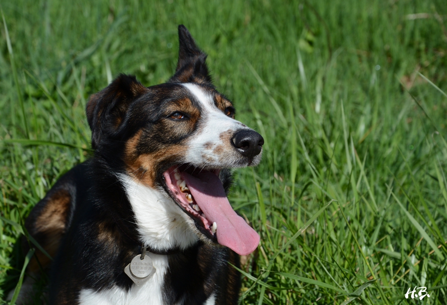 | Dire merci | Des pour ta mamie aussi !Aujourd'hui c'était épluchage de bestioles : brossage de la jument en pleine mue et epilage de toutous... Je peux remplir quelques coussins En attendant, Badine prend le soleil (et j'ai une poussière sur mon objectif ) ![]() |
