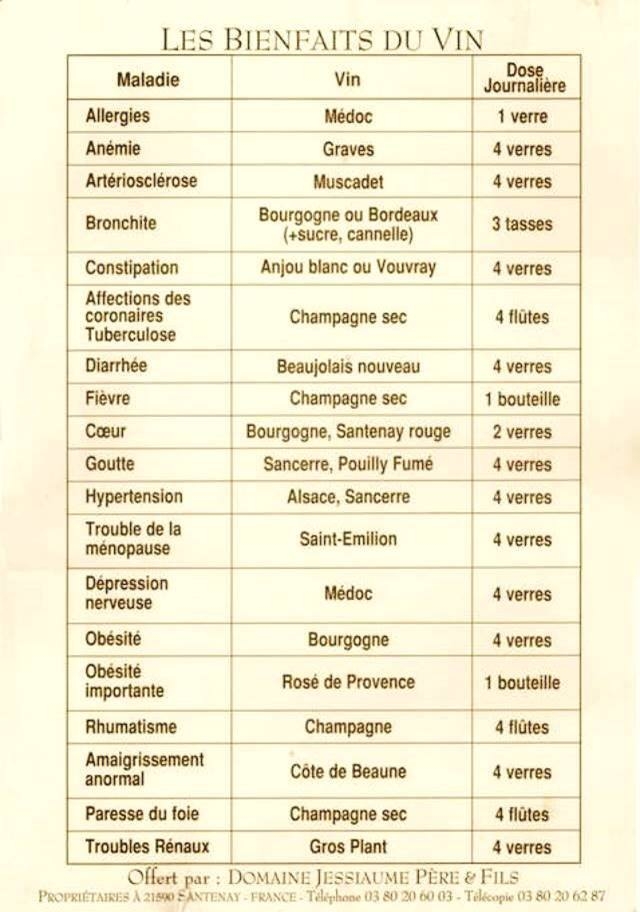 | Dire merci | Et...mes résolutions pour 2016.....![]() A l'orée d'une nouvelle année, j'ai décidé de m'en remetttre aux conseils du Docteur DUCLAUX dans sa déclaration du 20/01/1903: "le vin est un aliment" Au risque hélàs de froisser mon gastroentérologue. |