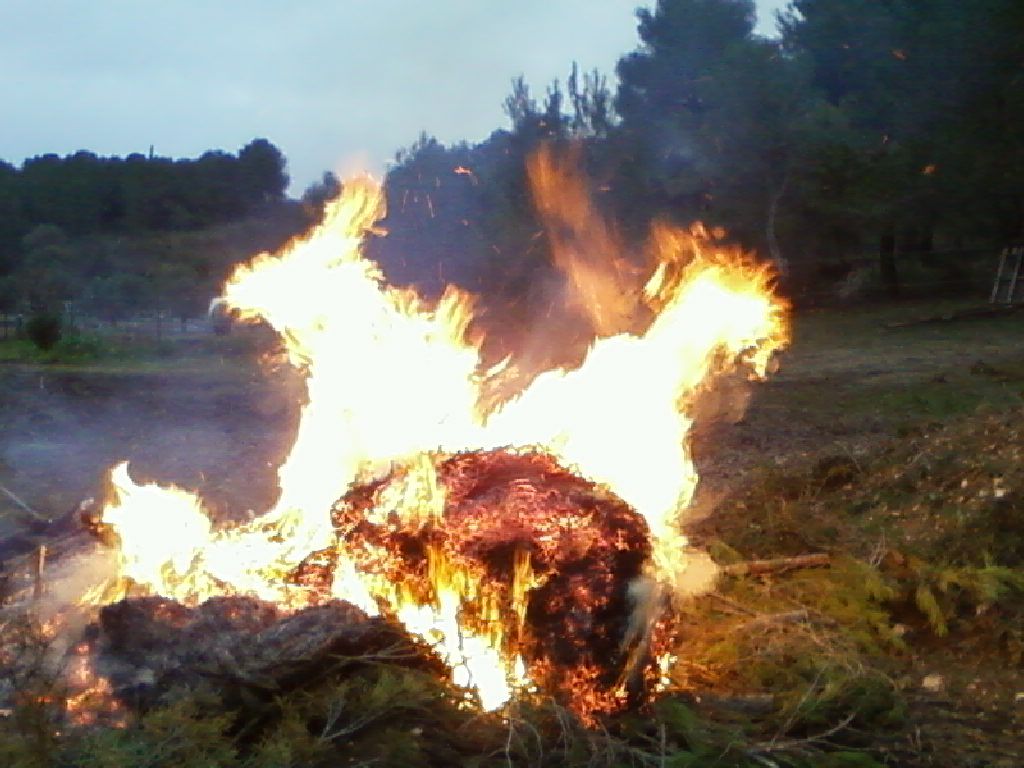 | Dire merci | En fait c'est un round ball qui flambe... (y'en a qui brûlent des billets de 500, nous ce sont des round ball... ) et donc demain matin on va devoir monter dans l'Aveyron pour chercher 1 750 kgs de foin !(en fait les round balls qui flambent comprenaient des mauvaises herbes, sinon on n'est pas encore fous...) |