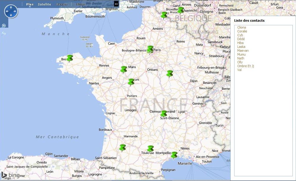 | Dire merci | Iris, Lonestar, Razak, Tyoc : je veux bien vos codes postaux ( en mp si vous préférez) ou ceux de la ville la plus proche, ou encore ceux de la ville où vous désirez apparaître sur la carte, merci ceux que j'ai mis d'office et qui veulent changer, ne vous gênez pas j'ai mis Carine aussi mais elle n'apparaît pas encore, je n'ai pas changé l'image |