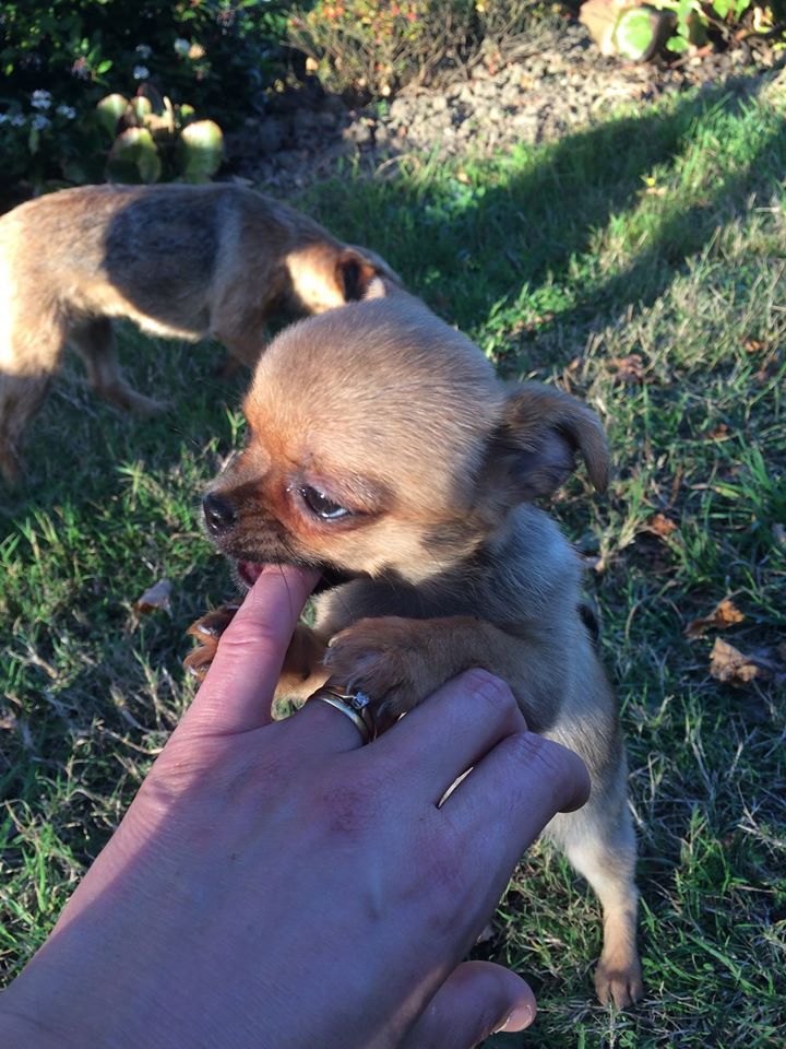 | Dire merci | Je souhaite lui trouver une famille mais pour l'instant personne ne regroupe tous les critères nécessaires à mes yeux 900 g c'est très petit, et elle ne grandira plus donc pas d'enfants en bas âge, pas de personnes âgées car elle est très tonique... Même si elle est en parfaite santé, elle est plus fragile qu'un chihuahua normal, donc une famille qui assurera en cas de problème les frais Vétérinaires... Pas quelqu'un qui cherche un chihuahua miniature pour de la frime... Interdiction formelle de la faire reproduire... Bref, Quelqu'un qui pourra s'en occuper 24h/24... |