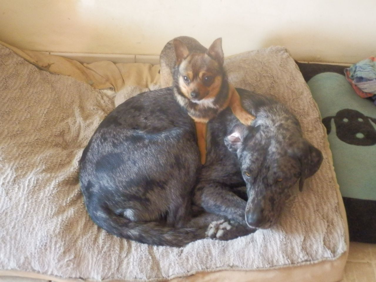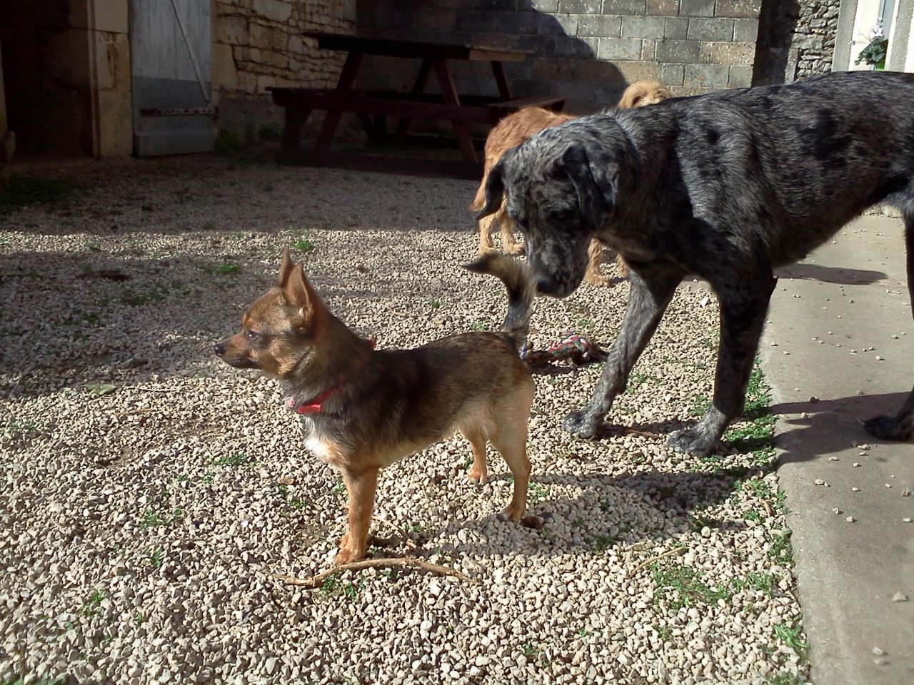 | Dire merci | coucou tout le monde ! Je n'avais jamais vu ce poste sur les chichi Bon je vous présente ma "Cahouette" légèrement plus d'un an et à la maison depuis 4 mois maintenant, évidemment elle n'est pas LOF,d'après la personne chez qui je l'ai récupéré ses deux parents étaient chichi mais bon voilà je n'en sais pas plus. Une chose est certaine elle est hyper affective, s'entend à merveille avec sa copine croisé labrador/dogue allemand, et elle n'a pas du tout le comportement "roquet" peut être parce qu'elle vit qu'avec du gros toutou ! HiHi quant je pense que certain petit chien n'auront jamais le bonheur que d'avoir comme copain un "énorme" parce que les proprio on peur, en tout cas la notre à l'air contente d'avoir une grosse copine ! ![]() |