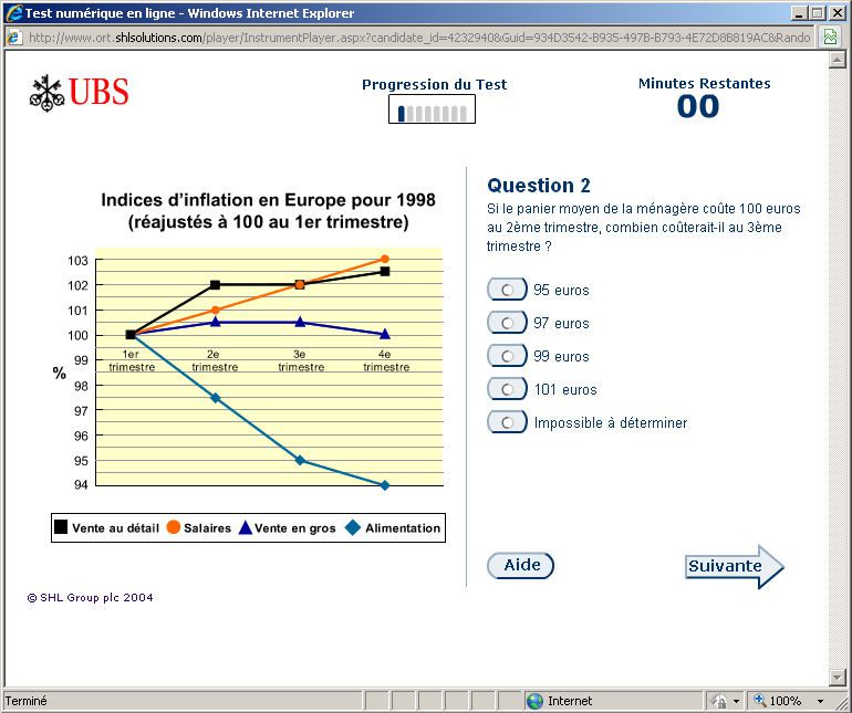 % d'évolution entre T2 et T3= (95-97.5)/97.5*100= -2.5% valeur du panier en T3= 100*0.975= 97.5 arrondi à 97€ |