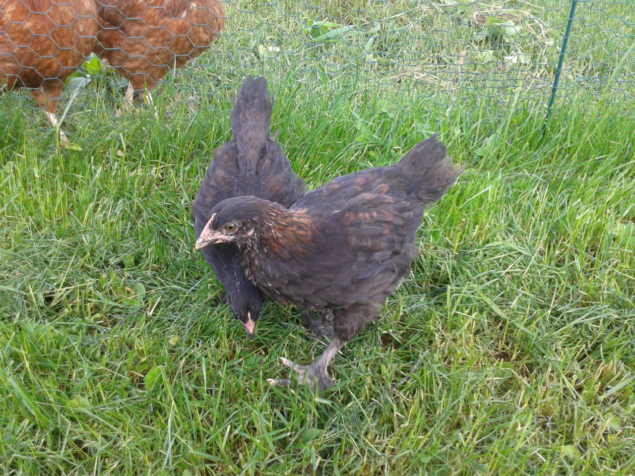 | Dire merci | ben, leur camail n'est pas très marqué, je trouve... Peut-être parce qu'elles sont jeunes ? Ce sont des Noires Cuivrées ? Elles ont des plumes aux pattes ? |
