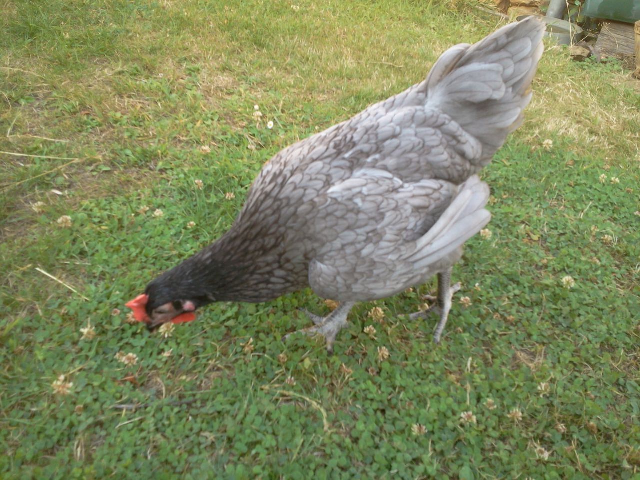 | Dire merci | Ah, j'en ai une qui ressemble à ça comme couleur ! Elle s'appelle Pepper. Donc, ce serait une "bleue de France" ? Apparement, il s'agit d'une race "inductrielle, créée par croisements, pour la ponte. Ce sont de bonnes pondeuses. C'est celle à l'arrière plan ![]() |