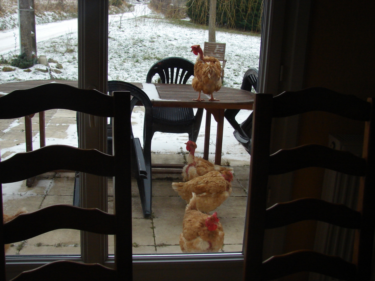 | Dire merci | J'ai des cou-nu, 8 poules et un coq. Je les ai eu à 4 mois (l'été dernier) et elles ont commencé à pondre 3 semaines après. Elles ne se sont encore pas arrêtées de pondre ( entre 3 et 6 oeufs /jour encore en ce moment). Elles gambadent dans toute la propriété en liberté, et elles rentre dans leur poulailler ( un box aménagé pour elles dès la tombée de la nuit) et des fois, elles viennent taper à la vitre de la porte-fenêtre .Bon, on peut rentrer, on se gèle nous ! ![]() Carine, elles ont du avoir peur de quelque chose, laisse leur le temps, elles vont ressortir. |