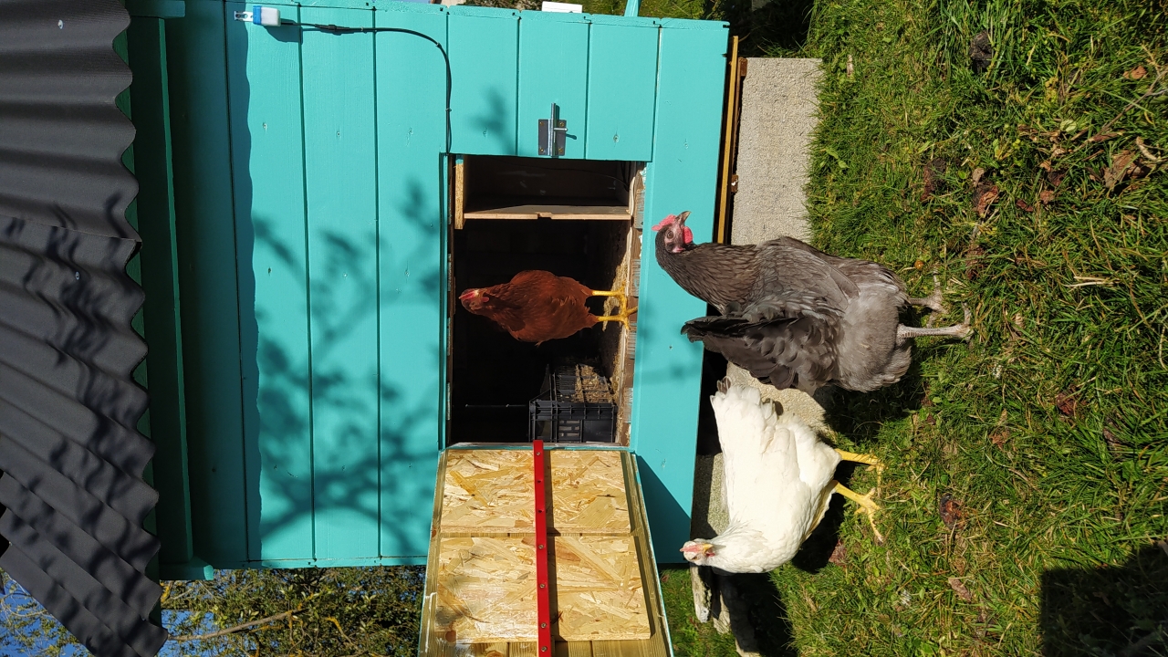 | Dire merci | Ma porte auto fait un diamètre de 30 cm environ. Mais il y en a d'autres systèmes où tu achètes juste le mécanisme, et tu le fixes sur la porte de ton choix (donc de la taille de ton maxi coq). Regarde les ChickenGuard par exemple. |