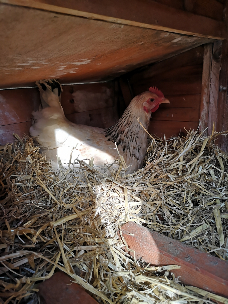 | Dire merci | Coucou, ça faisait longtemps que je n'étais pas venue sur ce post Bon, après mon demi-échec du confinement dernier: 6 oeufs fécondés, 4 poussins, 1 mangé par la chienne, 2 coqs (mangés par nous) et la dernière poule vivante qui a décidé de sortir du poulailler alors que la chienne était dehors..... On recommence! 6 oeufs fécondés sous ma mini poulette qui couve: 2 kaki, 2 marins et 2 araucana, résultat ds 18 jours! |