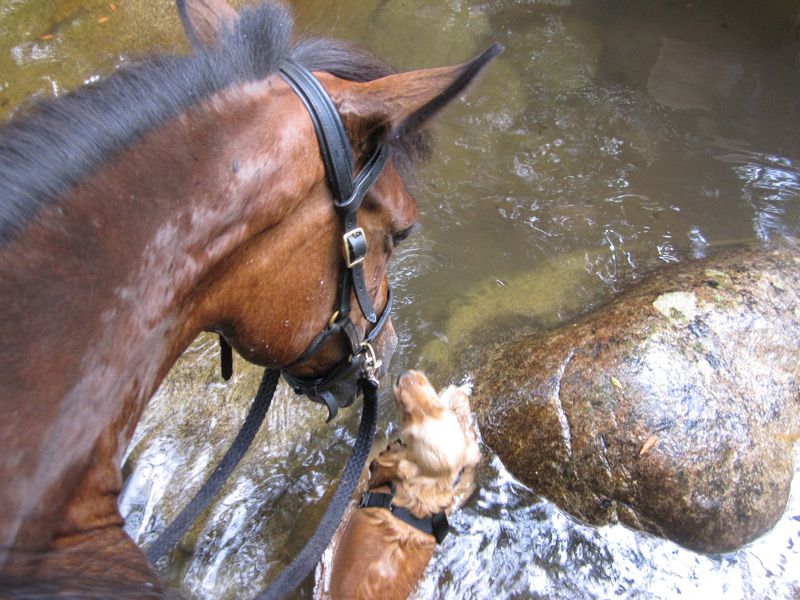 | Dire merci | J'ai un cocker anglais, il y est toujours de la partie en balade avec les chevaux plus jeune il le fesait en partie en selle mais maintenant il ne veut plus et prefere rester au sol il n'y a qu'au galop ou il est un peu largué mais il nous ratrappe des que l'on repasse a une allure inferieur la derniere sortie a dure la journée complete... le soir il reclamait encore a jouer a la balle ![]() [videos]2186[/videos] |