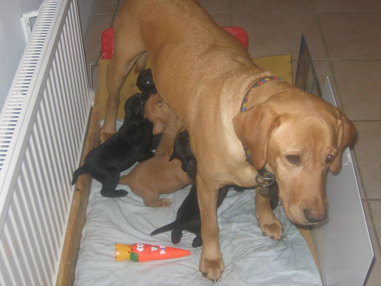 | Dire merci | Ma chienne labrador nous en a fait 11 !! Avec 9 mamelles , on du faire "un tri" ![]() Je les ai gardé 1 mois dans la salle dans une caisse mais aprés ça a vite était ingérable (odeur+devoir se lever la nuit car certains sortaient de la caisse et couinaient sur le carrelage froid ...) Ensuite direction le garage avec de la paille !! Ma chienne était épuisée ...faut le nourrir tout ce petit monde ! On les a donc sevrés un peu plus tot !! Courage à la maman ! ![]() |