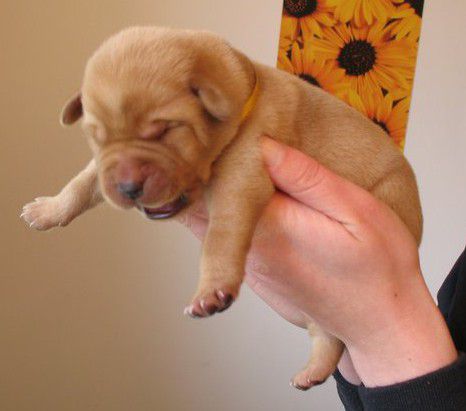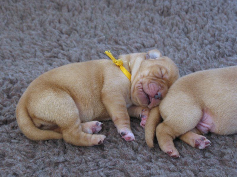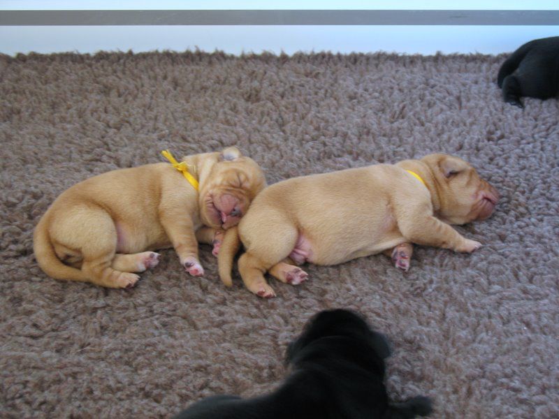 | Dire merci | Aaaaaaaaah...qu'ils sont beaux !! Bouh, ça me rappelle tellement de souvenir ! Chez les éleveurs, il y avait un "collier" de couleur par chiot...vous, à priori, c'est selon le sexe ? Mais comment faites-vous pour savoir qui est qui ? Les sables vont quand même être particulièrement foncé non ? La mienne était déjà bien claire...et elle l'est toujours ! Certains sont déjà réservés ? |