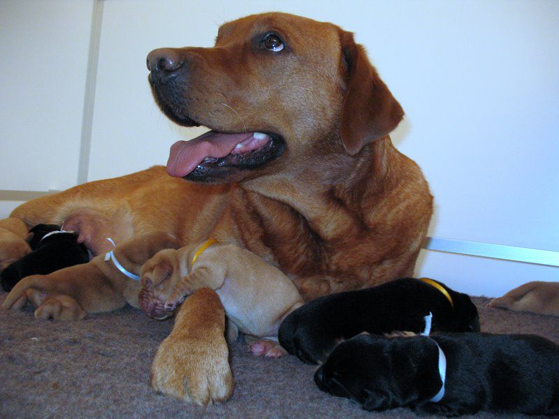 | Dire merci | Oh làlà trop mignon toute cette petite marmaille! La maman est vachement foncée dis donc, c'est la première fois que j'en vois une comme ça! Mais ça lui va très bien ^^ Je craque particulièrement pour le papa! ![]() Enfin, j'suis pas objective, j'adore aussi les Labrador puisque j'en possède une, une chocolat. |