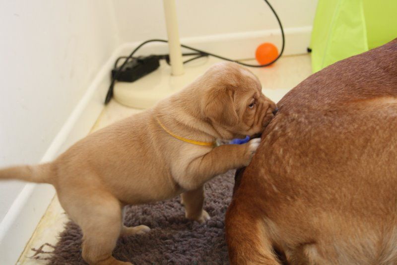 | Dire merci | Comme certains le savent, mon autre passion, après le cheval bien sur, ce sont les chiens et plus particulièrement les labradors. Nous avons un couple: un mâle noir, Akira et une femelle fox red, Cayenne, avec lesquels nous faisons du sauvetage en mer et de la recherche de personnes disparues. Dimanche dernier nous avons ainsi eu le bonheur de voir Cayenne donné naissance à 10 petites merveilles! l'échographie de de diagnostic de gestation: ![]() ![]() |