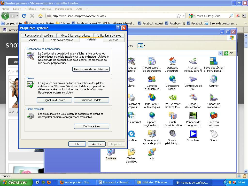 | Dire merci | cklique sur gestionnaire de périphérique .. tu va voir la page pour tenter de retrouver tes périphérique |