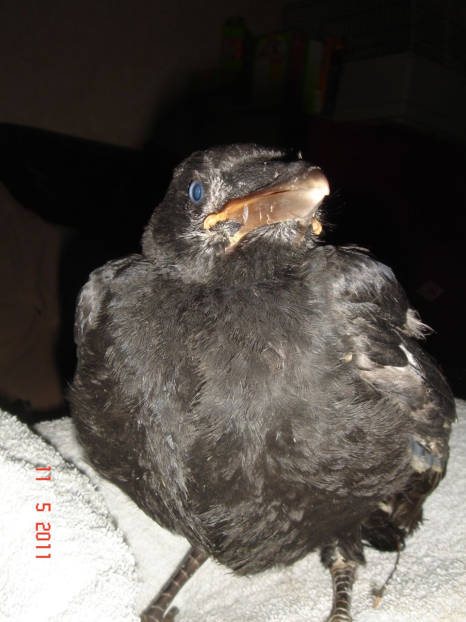 | Dire merci | Heu moyen motivée pour en prendre un 2eme, on a assez de bestioles à la maison, d'autant plus que j'en "trouve" plus que régulièrement... Par contre elle aura ses parents qui vivent dans un chêne dans un des prés, et il parait que les corneilles restent très "famille", même si bébé a été élevé chez les humains. ce sera l'occasion de tester cette théorie. On verra. Je veux bien lui prendre une copine poule, mais bon............... après là elle s'intéresse à tout : lapins, chien, chats, chevaux même, et nous bien sur... elle adore la musique, la télé et s'écouter (oui on avait fait une vidéo, du coup on la lui fait écouter )Bref, pour le moment, elle a pas l'air de s'ennuyer plus que ça... même si les congénères c'est toujours mieux.... |