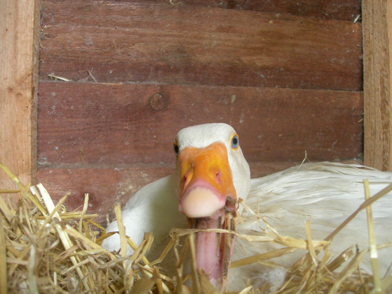 | Dire merci | Bonjour! J'ai un jars et une oie qui me fait assez régulièrement des oeufs. D'habitude elle les casse ou les couve 2-3 jours puis ne s'en occupe plus. Là ça fait un peu plus de deux semaines qu'elle couve et ne sort pas de sa cabane. Je ne sais pas s'ils sont fécondés mais en allant m'occuper de la maman aujourd'hui j'ai entendu des petits "toc-toc-toc" qui provenaient de sous elle. Est-ce possible que ce soit les oisons qui donnent des coups de bec dans leur coquille ? Après deux semaines ? Du coup je stresse un peu, j'ai jamais eu d'oisons, je ne sais pas comment m'en occuper. Vos conseils sont les bienvenus! Merci. ![]() |