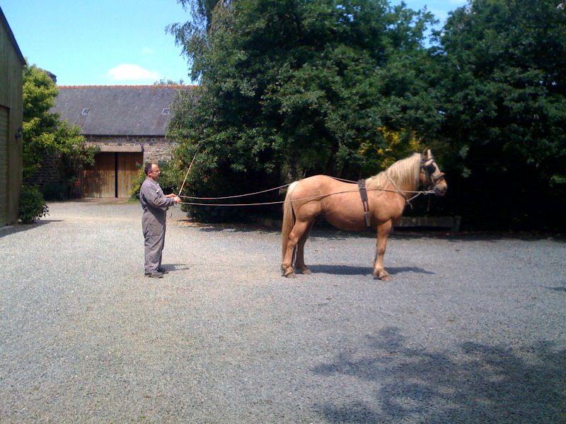 | Dire merci | Ayé , j'ai les photos !!! Roooo purée en plus il est beau !!!! ![]() Moi qui aime les p t'its gros !! J'aime les poneys genre Haflinger ... ![]() Le monsieur sur la photo avec les reines longues (c'est un ami du proprio)est passé a mon magasin ce matin , et on a discuté. C'est un cocktail des prés qui n'était pas prévu ce petit !!! Il commence les reines longues et vont le mettre a l'attelage gentiment en paire d'ici un mois pour lui faire découvrir le monde. Ensuite il se propose de m'aider pour parfaire le débourrage chez moi !! C'est sympa !! Le seul truc c'est son nom : JULES !!! (beurk) Il me dit qu'il pense qu'il n'est pas a la lettre . Je verrais ça avec le proprio dimanche . Il est beau non ? Sur la photo , c'est moi ou son posterieur gauche est fort appuyé ? (je psychote!) |