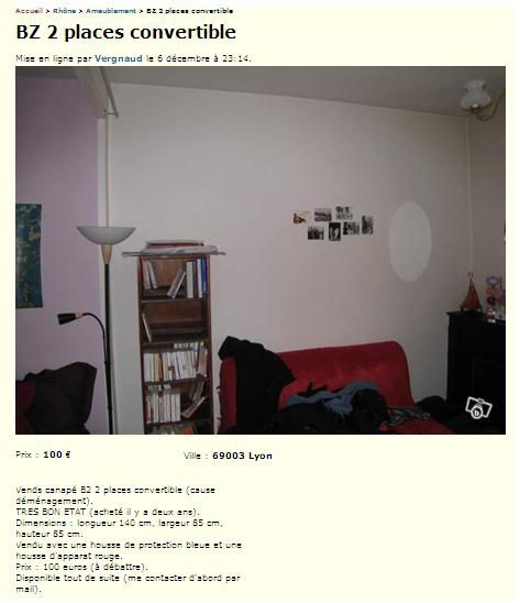 DéconnectéDire merci | Je voulais mettre cette annonce quelque part... juste pour la qualité de la photo (c'est le canapé qui est à vendre )Lien ![]() |