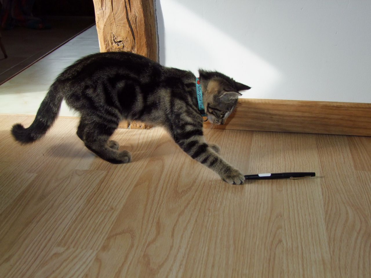 | Dire merci | Neko a une bouille a calins Une sangsue tu devrais plutôt dire J'ai jamais vu un chaton aussi collant, ce matin je marchais avec un Neko accroché à ma cheville! En tout cas il s'est déjà habitué à mes deux toutous et ils jouent à trois. |