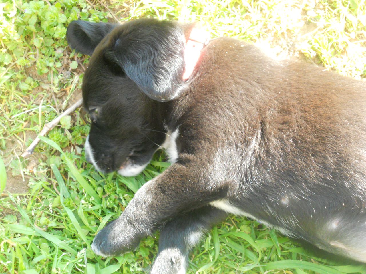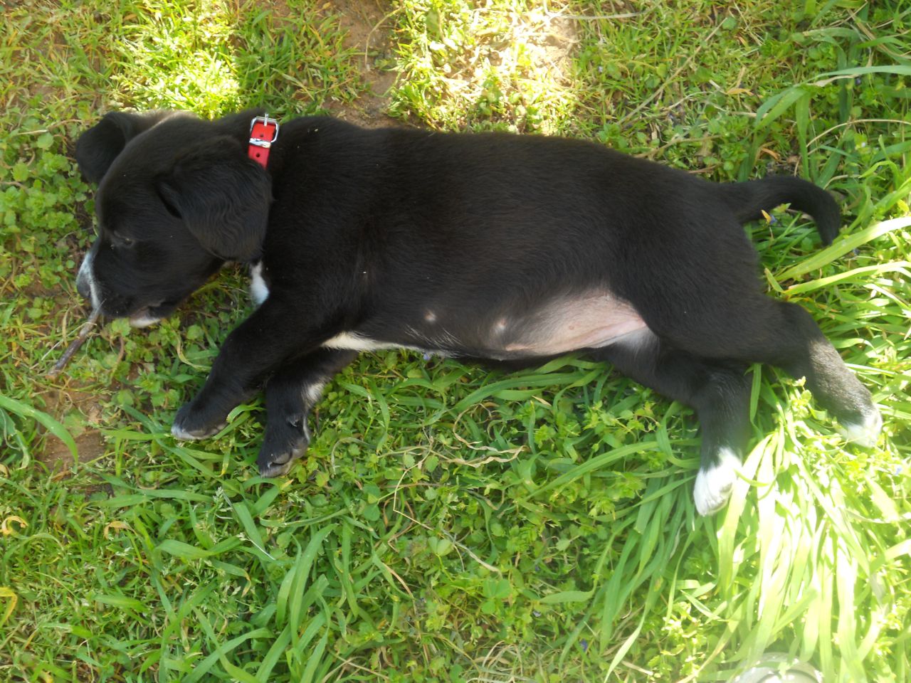 ) , un petit chiot trouvé près du canal derrière chez moi , ils étaient trois , on a pas trouver la moman , apparement ils sont sevrés ( mangent / boivent seul ) on les a laisser la , et 3h plus tard ils étaient toujours la , du coup on les a embarquer , on a pris la petite fille , ma marraine les deux males , enfin je raconte ma vie la