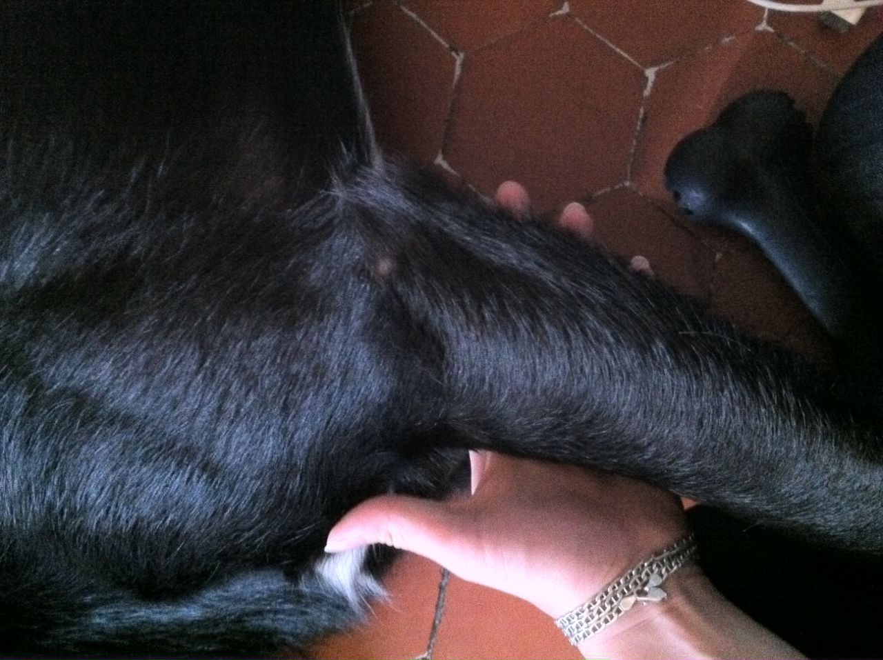| Dire merci | pas cool du tout Je sais, il faut que je prenne RDV pour le chien jaune chez le dermato. Problème de peau également. Pour ce qui est de la cal, je trouve que c'est assez "loin" du coude. Mais la photo peut être trompeuse. |