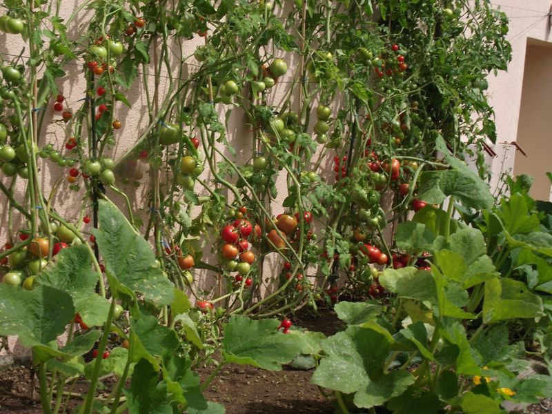 | Dire merci | Ah oui, le mildiou, ça été difficile en début d'été : nos voisins ont tous perdus leurs pieds d'ailleurs. J'ai eu la chance d'avoir mis mes plants en terre sous le débord de toit de la maison, ça les a bien protégé de l'humidité, et le mur de la maison a diffusé un peu de chaleur la nuit, je pense que ça a bien aidé. Caro, vu que mes tomates te plaisent, en voici en voilà : ![]() ![]() ![]() |