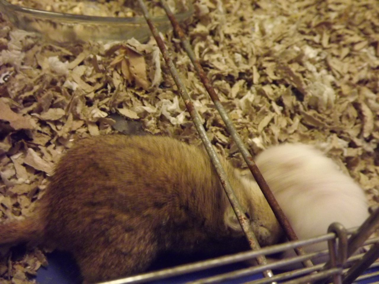 | Dire merci | Photos d'hier ![]() A la toilette ... ![]() En ce moment Bébé arrête pas d'embêter sa mère, il lui "saute" sur la tête, essaie de passer sous elle en "forçant" le passage ... Jeux de bébés gerbilles ? ![]() Une des rares photos de "dessous", seulement on voit mal, mais si quelqu'un est apte à distinguer le sexe là-dessus, je suis preneuse ! Merci ![]() (oui, j'ai un bébé gerbille-écureuil )![]() |
