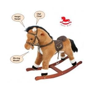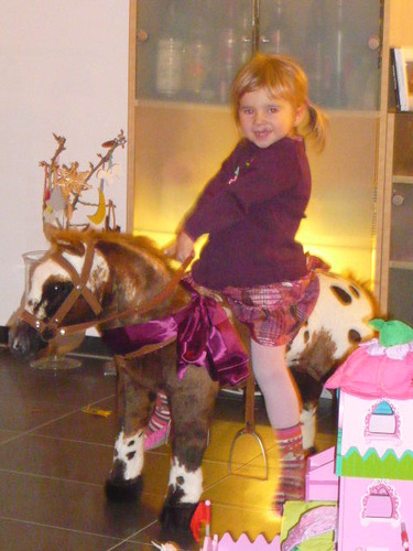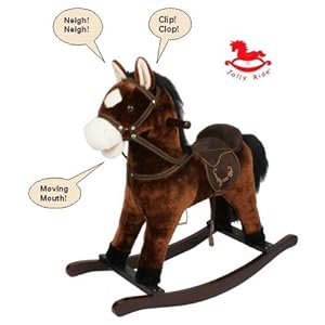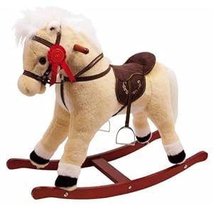 | Dire merci | oui les chevaux à bascule ça doit être super ! mais pour des raisons pratiques, j'opte pour celui qui ne bouge pas, à tord peut être.... on a du parquet dans le salon et j'ai craint que le cheval à bascule me ruine le parquet... Alors finalement, j'ai pris l'appaloosa... tout simplement parce que c'est celui que ma fille préférait J'avais fait une sélection de 3 (moi je préférais celui que j'ai mis dans mon post initial, le gris type arabo-boulonnais ) .J'ai copié les photos des chevaux sur une page word et j'ai fait exprès de laisser la page ouverte. J'ai dit à ma fille que j'avais des photos de chevaux et je lui ai demandé lequel elle préférait. Je lui a demandé 10 fois "t'es sûre ??? tu préfères pas le gris ???? c'est sûr ????" mais non, rien à faire, elle préférait l'appaloosa donc celui là : ![]() Ilou, regarde une photo de celui que j'ai pris avec une enfant sur le dos. Photo tirée d'amazon.de ![]() |